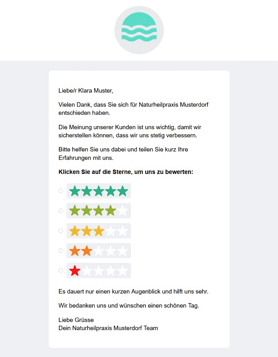 Mit dem integrierten Bewertungssystem von wellUp erhalten Sie automatisierte Google-Bewertungen, die Ihre Reputation und organische Sichtbarkeit verbessern.